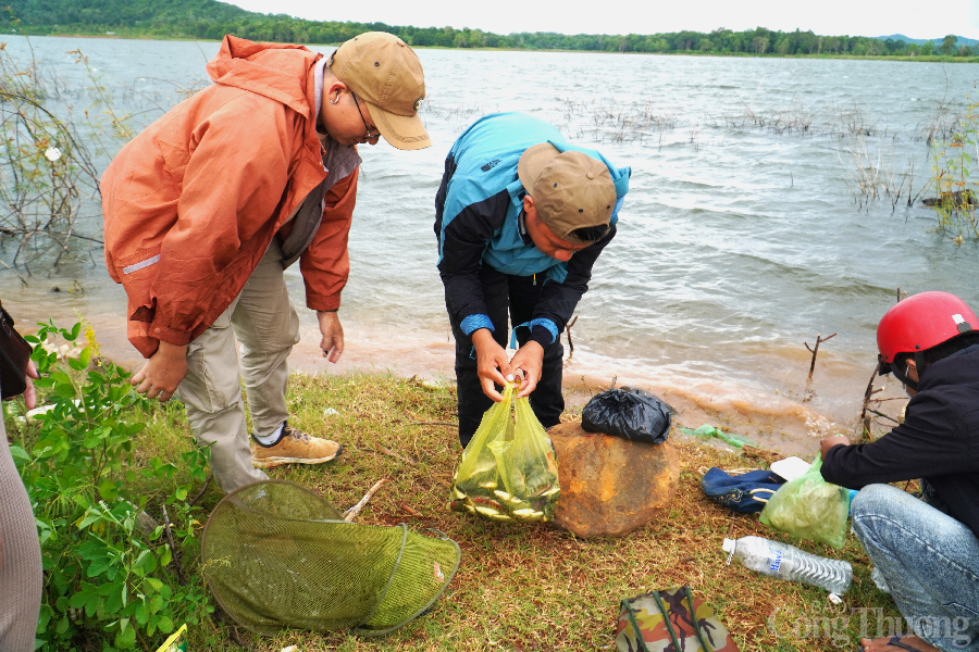 Nhóm bạn trẻ Thanh Hùng (áo cam) cho biết, nhóm bạn thường dành thời gian cuối tuần để câu cá, cắm trại tại hồ Ea Kao. “Lần nào đi câu nhóm mình cũng thu được vài ki-lo-gram cá, chủ yếu là các loại cá chép, lóc, mè, rô phi… số cá này được tụi mình đem về liên hoan vào cuối tuần”, bạn Hùng cho hay.