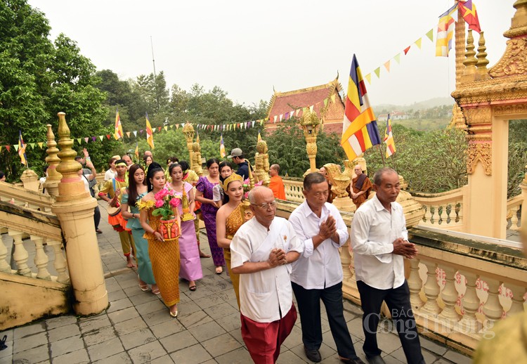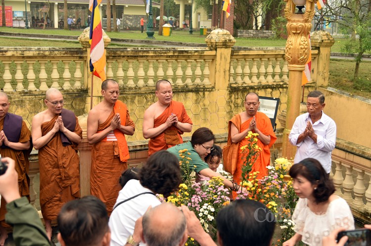 | Các nhà sư, tăng ni phật tử và đồng bào đến chiêm bái và thực hiện các nghi thức |