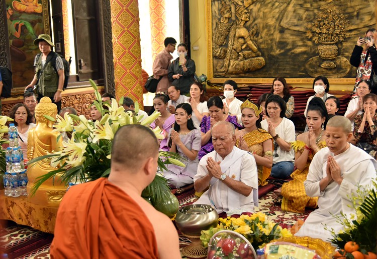 | Đồng bào Khmer lên chùa nghe các vị chúc tụng năm mới |