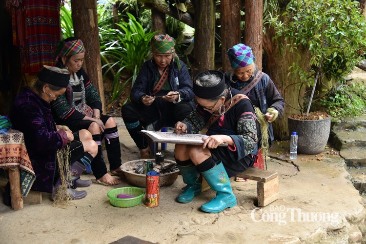 | Để làm ra tấm vải thổ cẩm, phụ nữ dân tộc Mông phải trải qua nhiều quy trình |