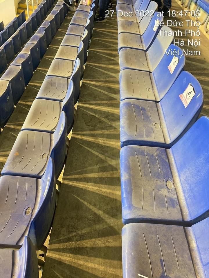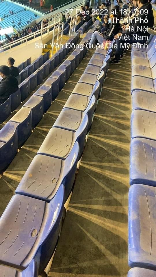 Trong trận đấu bóng đá Việt Nam - Malaysia diễn ra vào tối ngày 27/12, trên mạng xã hội chia sẻ rầm rộ về hình ảnh ghế ngồi bằng nhựa trên khán đài Sân vận động Quốc Gia Mỹ Đình đầy bụi bặm, cáu bẩn khiến khán giả phải xé túi ni lông để "lót" chỗ ngồi.