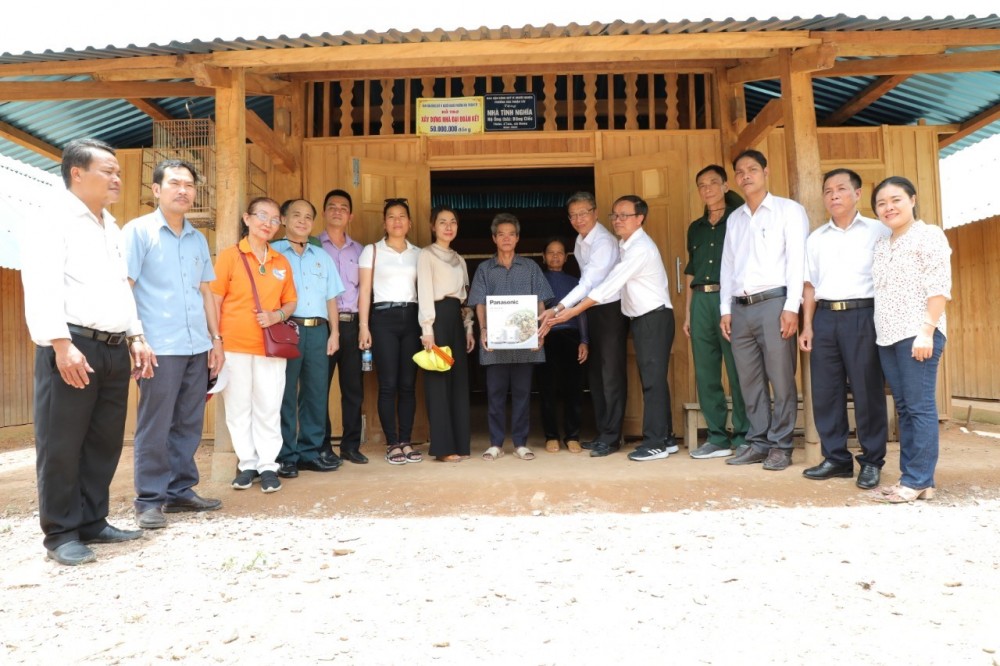 | Đoàn bàn giao 3 nhà đại đoàn kết và công trình vệ sinh tại thôn Zlao (xã Dang, huyện Tây Giang, tỉnh Quảng Nam). |