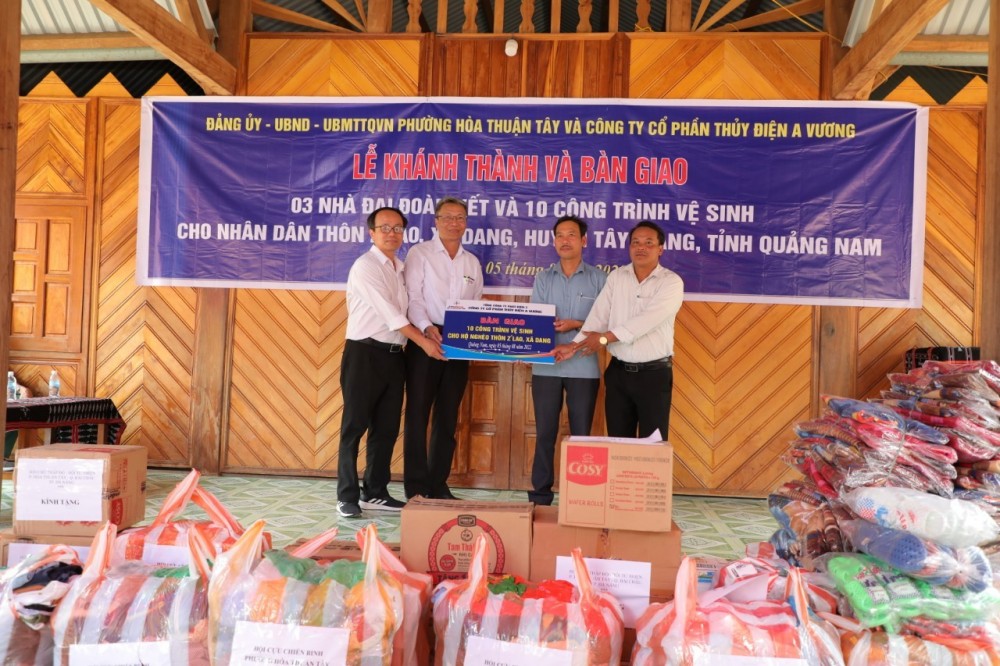Ngày 5/8, Công ty Cổ phần Thủy điện A Vương, UBND phường Hòa Thuận Tây (Q. Hải Châu, TP. Đà Nẵng) và Công ty Cổ phần Công nghệ và Giải pháp S5T phối hợp khánh thành và bàn giao, đưa vào sử dụng 4 nhà đại đoàn kết, 10 công trình vệ sinh cho người dân tại thôn Zlao (xã Dang, huyện Tây Giang) và thôn A Xờ (xã Mà Cooih, huyện Đông Giang) tại tỉnh Quảng Nam với tổng kinh phí hỗ trợ 402,4 triệu đồng.