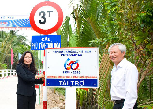 Hướng tới kỷ niệm 60 năm thành lập Tập đoàn Xăng dầu Việt Nam (12/1/1956 – 12/1/2016 ) , Petrolimex đã phát động nhiều phong trào thi đua sâu rộng đến toàn thể cán bộ lãnh đạo, quản lý, công nhân viên chức – lao động ( CBCNV-NLĐ). Ngoài việc tập trung mọi hoạt động thực hiện nhiệm vụ kinh doanh của đơn vị, CBCNV-NLĐ Petrolimex đặc biệt quan tâm đến công tác an sinh xã hội, nhận thức rõ ý nghĩa, niềm vui và trách nhiệm đối với cộng đồng. Công trình cầu Phú Tân – Thới Hòa là một trong các công trình chào mừng 60 năm thành lập Tập đoàn Xăng dầu Việt Nam.