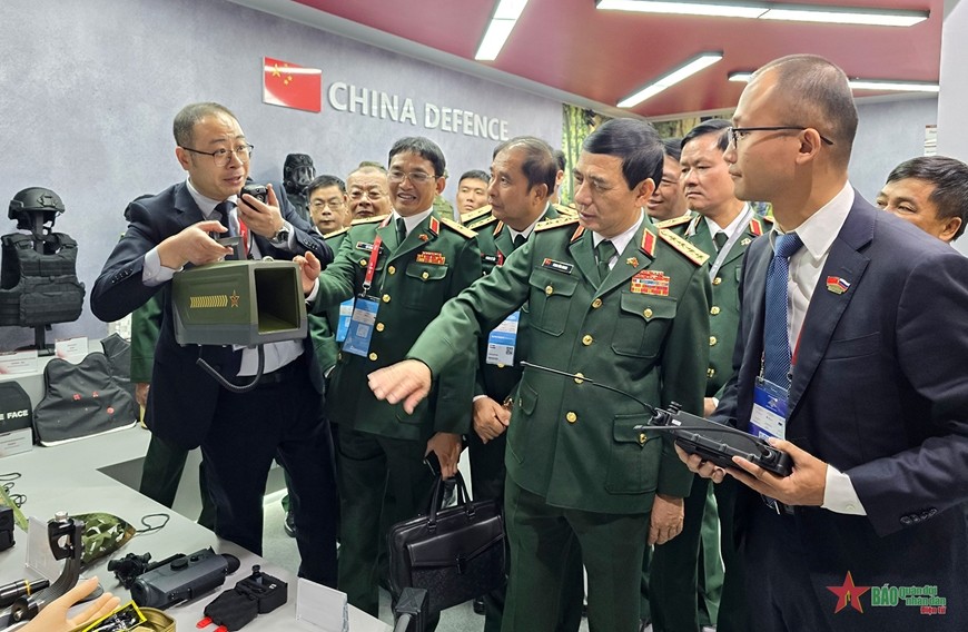 Sau Lễ khai mạc, Đại tướng Phan Văn Giang và các thành viên trong đoàn tham quan các gian hàng tại ARMY-2024. Tại mỗi gian hàng, Đại tướng Phan Văn Giang và đoàn đều dành thời gian tìm hiểu về các sản phẩm được trưng bày, trao đổi các thông tin liên quan, đồng thời hoan nghênh và đánh giá cao sự tham gia của các đơn vị, doanh nghiệp tại sự kiện này.