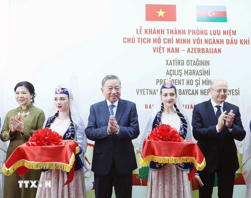 Trong khuôn khổ chuyến thăm cấp Nhà nước tới Cộng hòa Azerbaijan, trưa ngày 8/5 (giờ địa phương), Tổng Bí thư Tô Lâm và Phu nhân Ngô Phương Ly cùng Đoàn đại biểu cấp cao Việt Nam đã tham dự Lễ khánh thành Phòng lưu niệm Chủ tịch Hồ Chí Minh với ngành Dầu khí Việt Nam - Azerbaijan, diễn ra tại Trường Đại học Dầu mỏ và Công nghiệp Quốc gia Azerbaijan, thủ đô Baku.