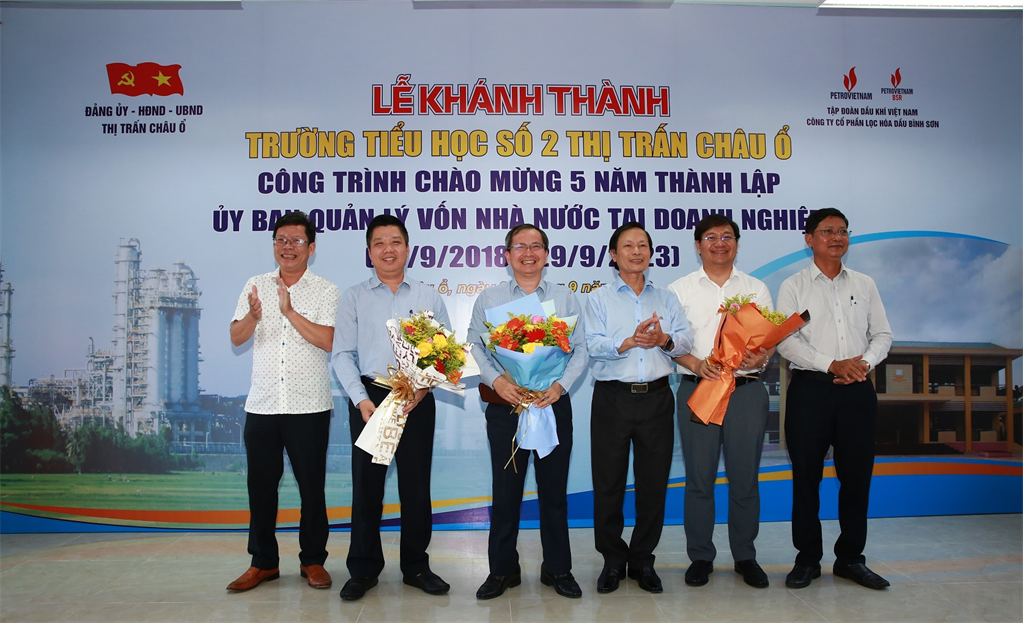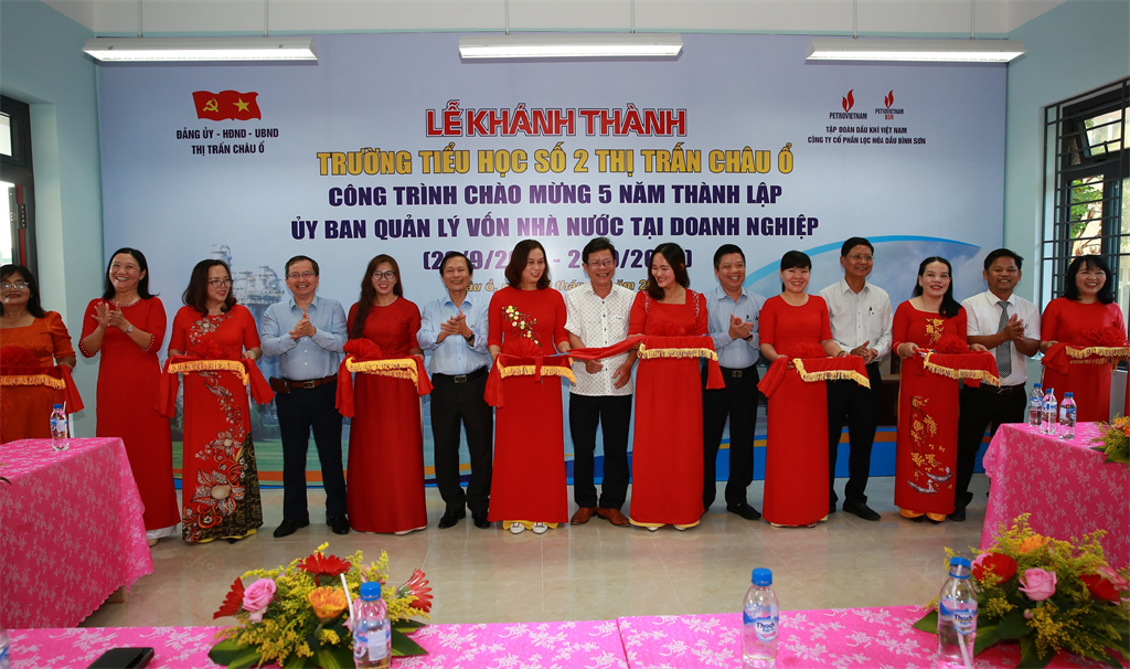 Thiết thực chào mừng 5 năm ngày thành lập Ủy ban Quản lý vốn Nhà nước tại Doanh nghiệp (29/9/2018 - 29/9/2023), ngày 20/9/2023, Công ty cổ phần Lọc hóa dầu Bình Sơn (BSR) phối hợp với Đảng ủy, HĐND, UBND thị trấn Châu Ổ (huyện Bình Sơn, tỉnh Quảng Ngãi) tổ chức khánh thành, bàn giao Trường Tiểu học số 2 thị trấn Châu Ổ do Công ty BSR tài trợ.