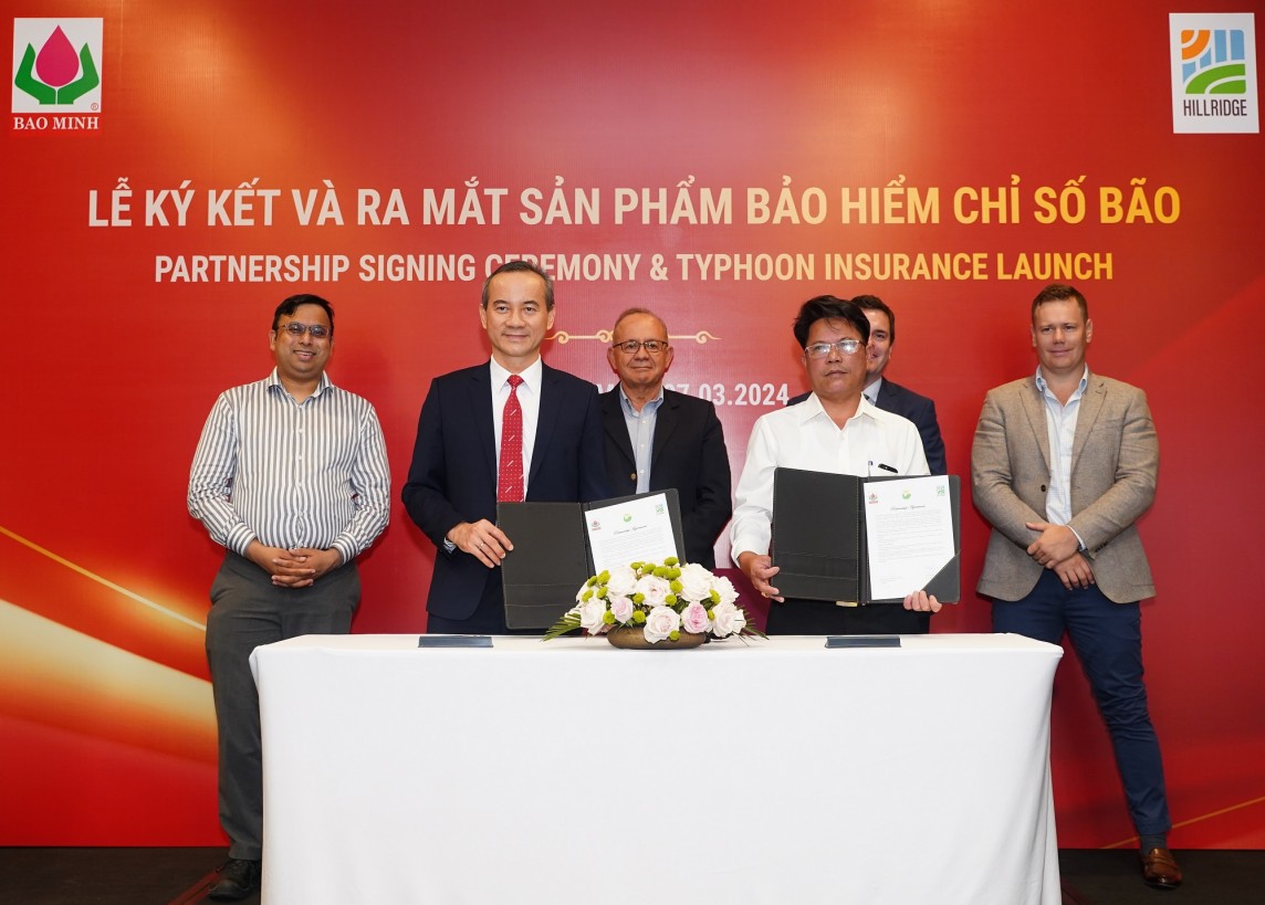 Nhằm hỗ trợ người dân có thể nhanh chóng tái tạo lại đàn gia súc gia cầm, trồng trọt lại mùa màng, phục hồi sinh kế sau bão, chiều ngày 7/3, tại TP. Hồ Chí Minh, Công ty Công nghệ bảo hiểm Hillridge (Úc) và Bảo Minh đã ký kết thoả thuận hợp tác và ra mắt sản phẩm Bảo hiểm Chỉ số bão hướng đến khách hàng trong lĩnh vực nông nghiệp.