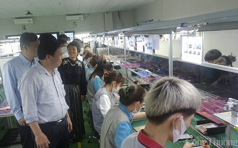 | Ngành dệt may gặp khó khăn do thị trường giảm, lãi suất cao và đơn hàng giảm. Trong ảnh: Giám đốc Sở Công Thương Nghệ An cùng một số ban, ngành địa phương tìm hiểu thực tế sản xuất tại các nhà máy |