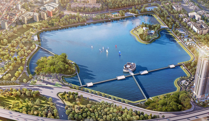 Dự án Công viên, hồ điều hòa Yên Hòa, Cầu Giấy có tổng diện tích gần 32ha, nằm tại khu vực giao cắt giữa đường Dương Đình Nghệ và đường Phạm Hùng. Trong đó, 19ha là diện tích mặt nước, phần còn lại là công viên cây xanh cùng hàng loạt tiện ích chức năng công cộng. Hồ nước thuộc dự án cũng là một trong những hồ điều hòa lớn bậc nhất tại Hà Nội.