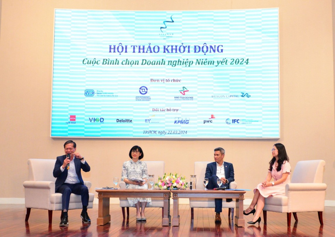 Tiếp nối thành công của “Cuộc bình chọn doanh nghiệp niêm yết năm 2023”, Sở Giao dịch Chứng khoán TP. Hồ Chí Minh (HOSE), Sở Giao dịch Chứng khoán Hà Nội (HNX), phối hợp với Báo Đầu tư, Công ty cổ phần Quản lý Quỹ Dragon Capital Việt Nam, cùng sự tham gia hỗ trợ của Hiệp hội Kế toán Công chứng Anh Quốc (ACCA), Viện Thành viên Hội đồng quản trị Việt Nam (VIOD) và 4 công ty kiểm toán hàng đầu thế giới tổ chức Hội thảo “Khởi động cuộc bình chọn doanh nghiệp niêm yết 2024” (VLCA 2024).