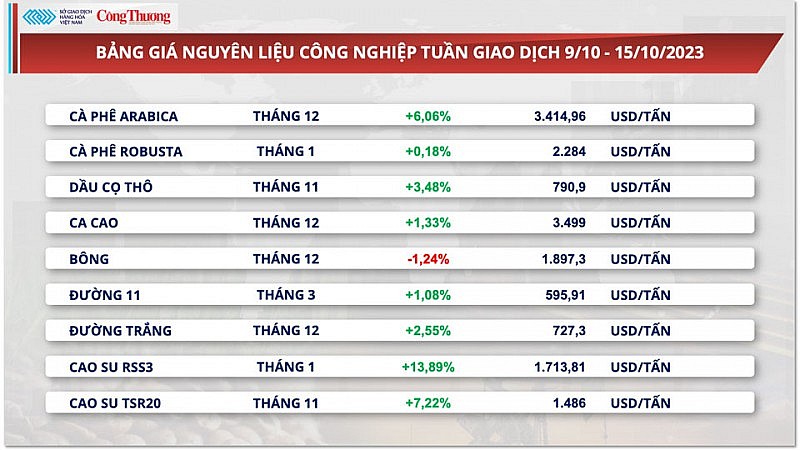 Thống kê từ Sở Giao dịch hàng hoá Việt Nam (MXV), thị trường cà phê là điểm sáng đáng chú ý trong tuần. Trong đó, giá Arabica bật tăng mạnh hơn 6%, trong khi giá Robusta phục hồi 0,18% so với tham chiếu. Theo MXV, xuất khẩu cà phê tại Brazil bất ngờ giảm trong tháng 9 tại Brazil kết hợp cùng việc đồng Real mạnh lên đã hỗ trợ giá.