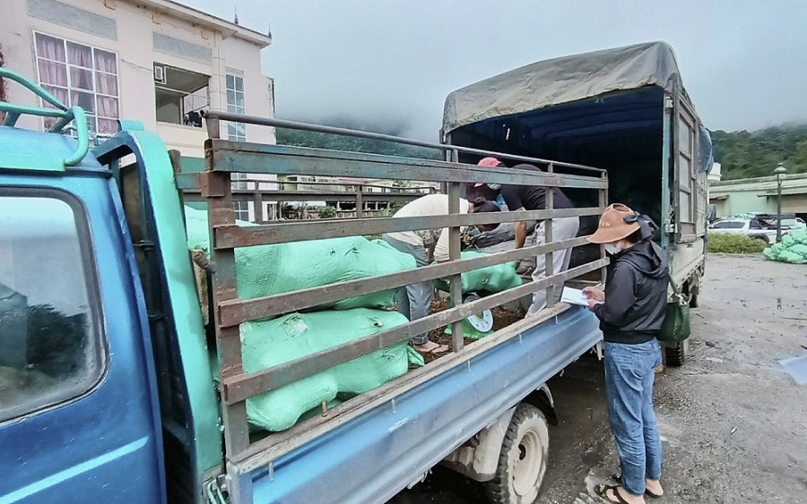 Phương tiện chờ chuyển tải hàng hóa tại Cửa khẩu quốc tế Nậm Cắn |