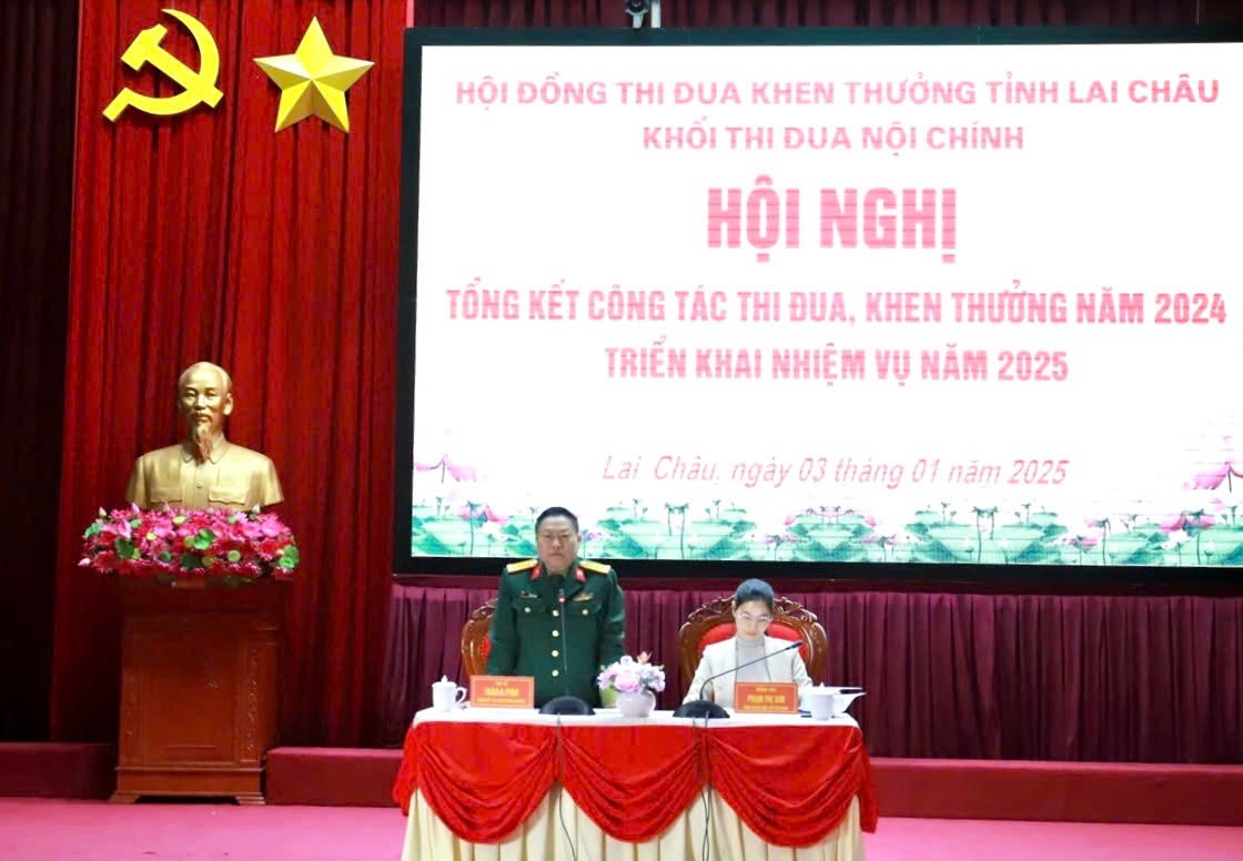 Hội nghị tổng kết công tác thi đua khen thưởng Khối Thi đua Nội chính tỉnh Lai Châu đã thông qua báo cáo tổng kết công tác thi đua khen thưởng năm 2024, phương hướng nhiệm vụ năm 2025. Theo đó, năm 2024, hoạt động thi đua của Khối Thi đua Nội chính tỉnh Lai Châu đã cụ thể hóa nội dung, tiêu chí thi đua phù hợp với tính chất, đặc điểm, tình hình thực tế của đơn vị. Việc chỉ đạo thực hiện nhiệm vụ, công tác chuyên môn gắn với các phong trào thi đua đã tạo khí thế thi đua sôi nổi. Xây dựng kế hoạch rõ ràng, phát động thi đua chặt chẽ, nghiêm túc, có chỉ tiêu phấn đấu cụ thể, đánh giá thang điểm chặt chẽ và được các đơn vị tham gia ký kết giao ước thực hiện với quyết tâm cao.