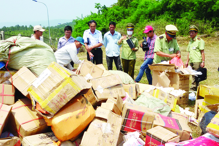 | Lực lượng chức năng tiêu hủy hàng lậu |