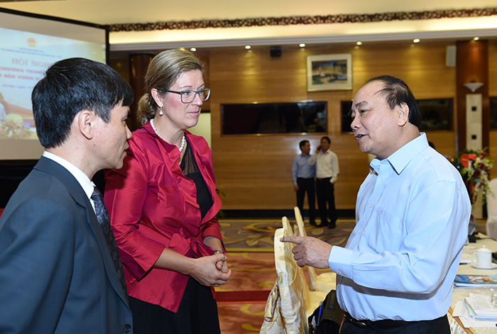 | Thủ tướng Nguyễn Xuân Phúc trao đổi với bà Louise Chamberlain - Giám đốc quốc gia của UNDP tại Việt Nam - về quyết tâm giảm nghèo của Việt Nam |