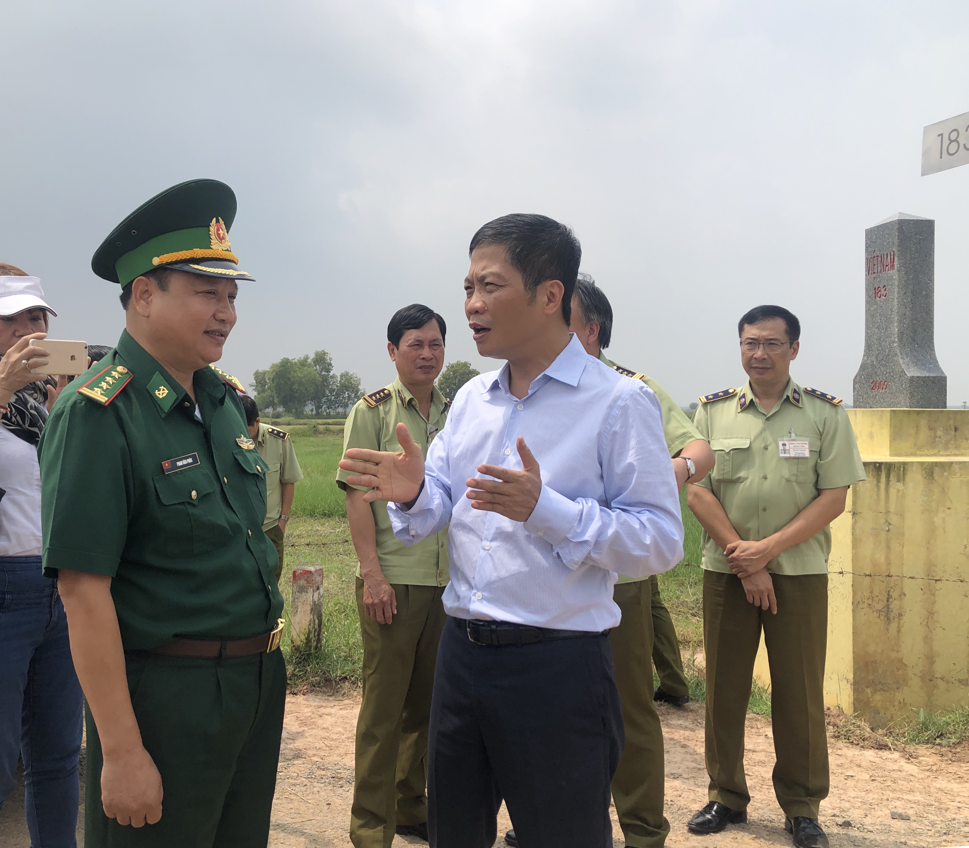 | Bộ trưởng Trần Tuấn Anh đi kiểm tra tình hình phòng chống buôn lậu thuốc lá tại Long An. Ảnh: VGP/Phan Trang. |