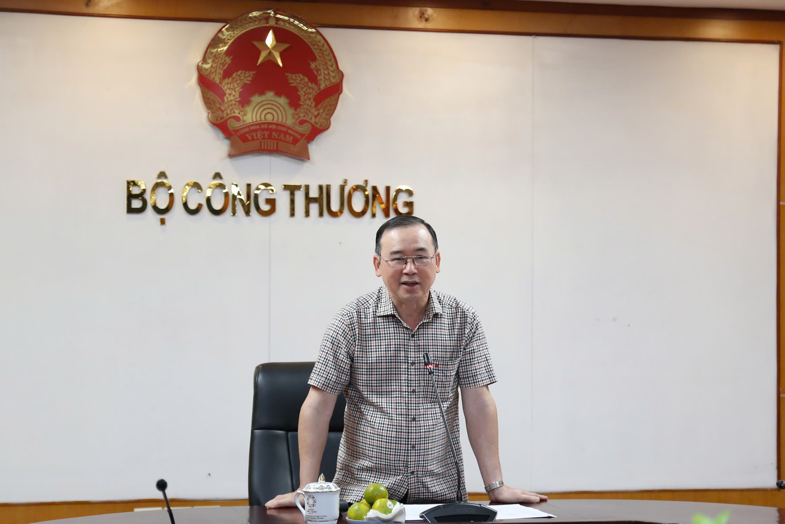 | Ông Phan Văn Chinh - Vụ trưởng Vụ Thị trường trong nước phát biểu tại cuộc họp. Ảnh: Hoàng Lan |