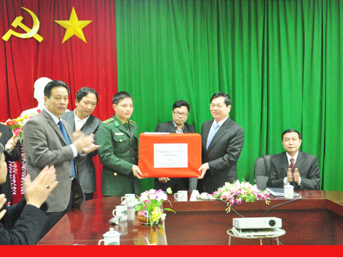 Nhân dịp công tác, để động viên các lực lượng chức năng chống buôn lậu, gian lận thương mại tại khu vực biên giới, Bộ trưởng Vũ Huy Hoàng đã gửi những phần quà ý nghĩa đến các lực lượng QLTT, Hải quan, Biên phòng tham gia làm nhiệm vụ tại Khu kinh tế và Cửa khẩu Thanh Thủy. |