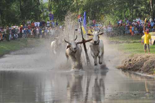 Ngay từ lúc bắt đầu cho đến lúc kết thúc, không khí lễ hội luôn tràn ngập với tiếng vỗ tay, reo hò, cổ động của khán giả cho những đôi bò tranh nhau “tốc độ” quyết liệt để về đích. Nước bắn tung tóe kèm những pha rượt đuổi gây cấn, cùng những hò reo cổ vũ khiến cho lễ hội thêm rộn ràng.