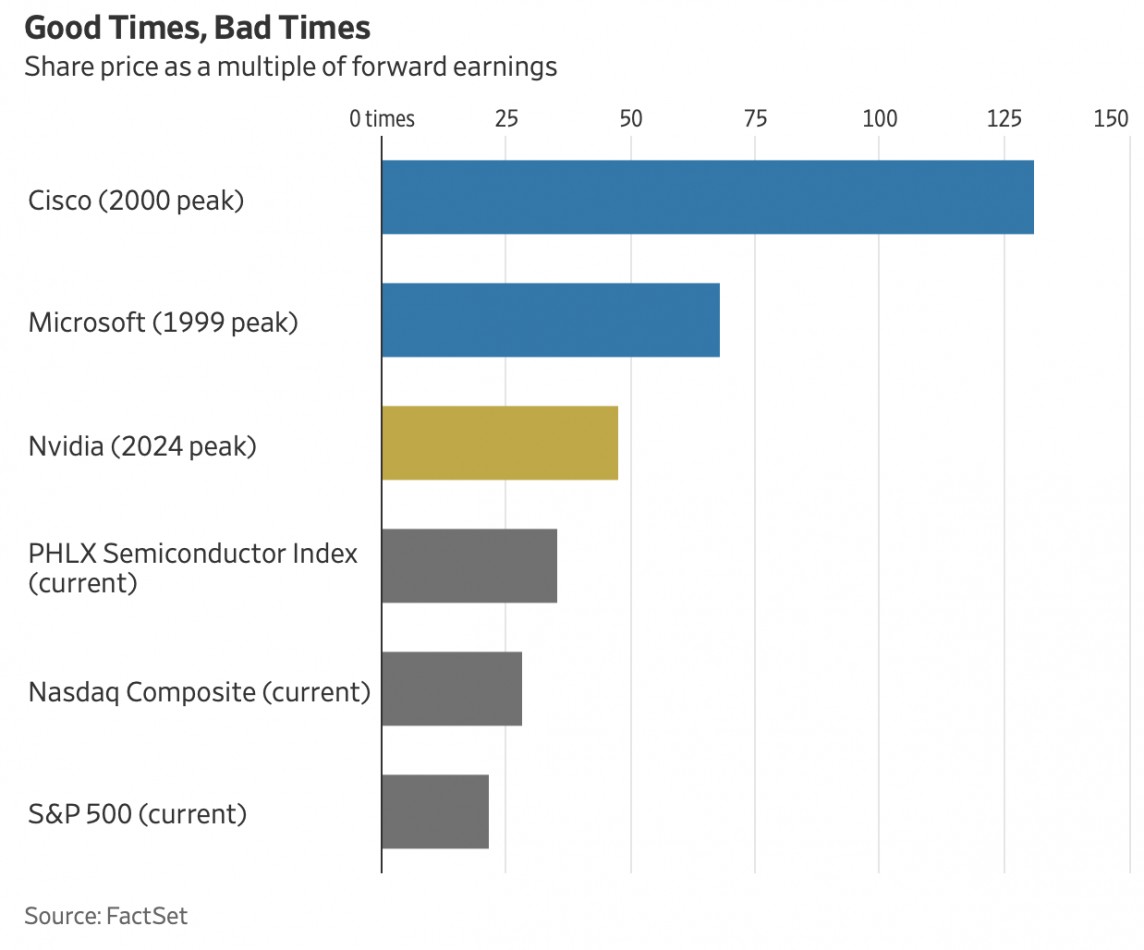 Nhưng giá cổ phiếu Cisco ngày nay thấp hơn khoảng 40% so với thời điểm đó, sau khi điều chỉnh theo các đợt phân chia. Đó có vẻ là một cảnh báo cho cổ đông Nvidia. Tuy nhiên cũng có một số khác biệt quan trọng cần xem xét.