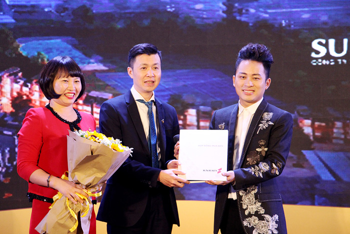 Xuất hiện với tư cách "hàng xóm" của các khách hàng tham dự lễ mở bán, ca sỹ Tùng Dương vui mừng chia sẻ niềm hân hoan khi trở thành công dân đầu tiên của Sun Grand City Thuy Khue Residence và nhận hợp đồng từ đại diện chủ đầu tư ngay tại sự kiện.