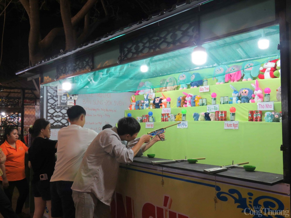 | Một số bạn trẻ tham gia vui chơi có thưởng trong khu phố đêm. Ảnh: Nguyễn Ngọc |