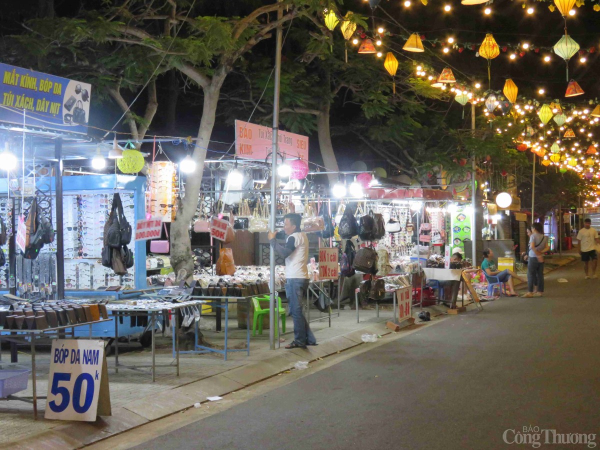 Các gian hàng được bố trí sắp xếp đẹp mắt, gọn gàng ở hai bên đường. Trên đường Lê Thành Duy phía bờ sông Dinh là chuỗi hàng ăn uống, người bán được tận dụng vỉa hè sát bờ sông bày bàn ghế phục vụ khách ăn tại chỗ. Phần bên kia đường là chuỗi gian hàng quần áo, giày dép, đồ lưu niệm. Ở đường Hoàng Việt, các gian hàng nằm hoàn toàn ở phần vỉa hè cạnh sông Dinh.