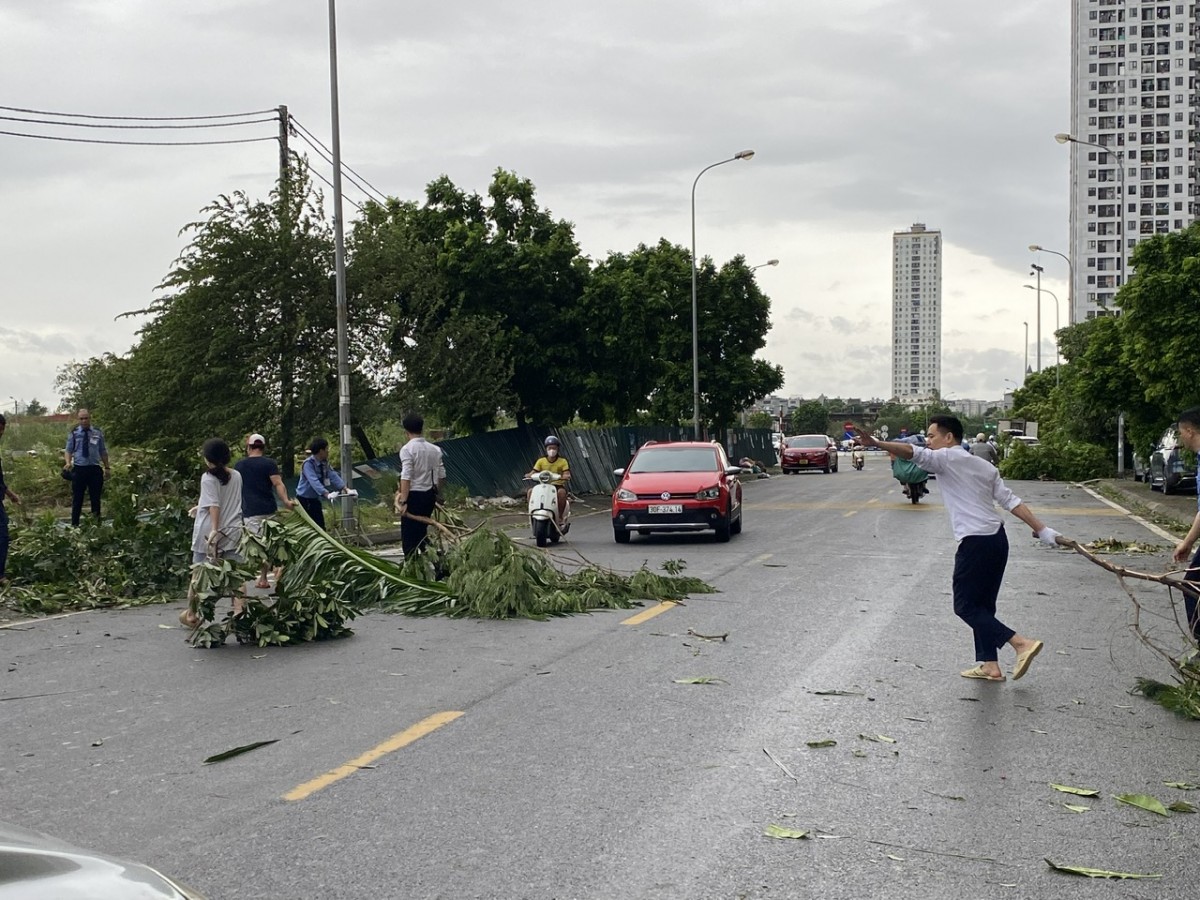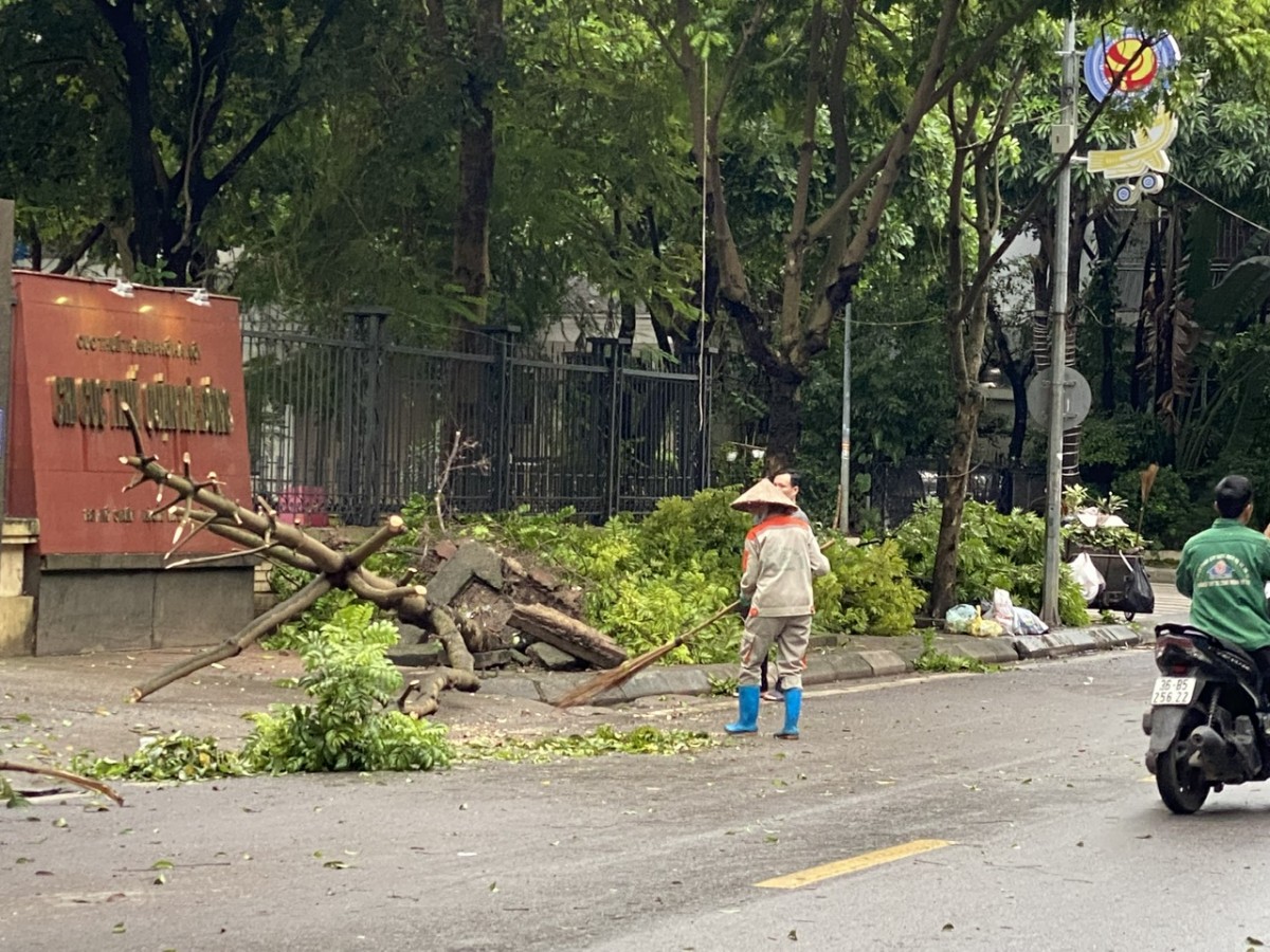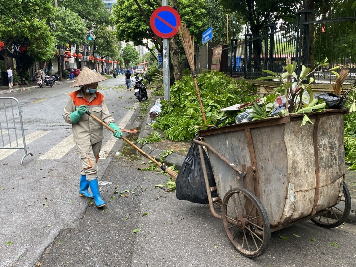Tại các khu chung cư, toàn bộ lực lượng bảo vệ, kỹ thuật và nhân viên môi trường được huy động thu gọn cành cây gẫy, kiểm tra hệ thống điện, thoát nước, giải phóng đường đi nhằm đảm bảo an toàn và vệ sinh cho khu dân cư.