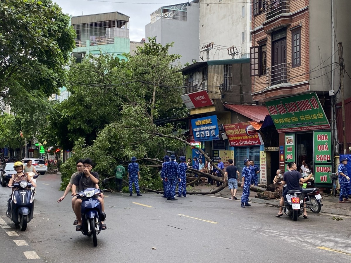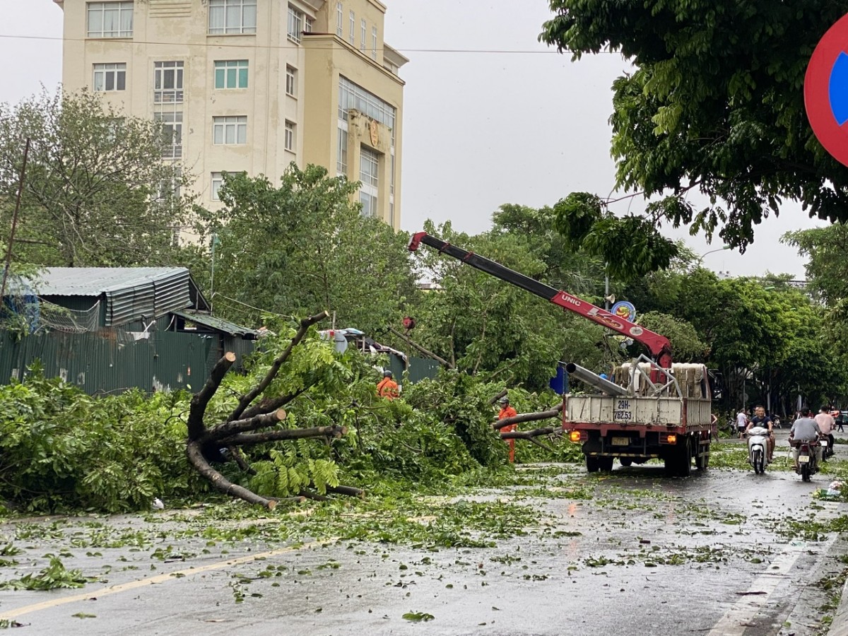 Nhằm nhanh chóng khắc phục hậu quả gió bão, đảm bảo cho giao thông thông suốt, hạn chế tối đa nguy hiểm cho người dân, ngay từ sáng sớm cùng với sự hỗ trợ của lực lượng dân phòng, quân đội, cảnh sát… nhân viên của Công ty CP Môi trường Đô thị Hà Đông đã nhanh chóng tiên hành cắt cành, dọn dẹp cây đổ tại các tuyến phố chính.