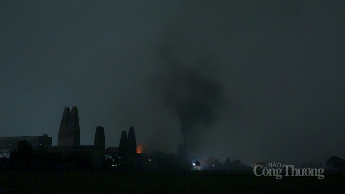 | Tình trạng khói bụi ô nhiễm thường xuyên xuất hiện cả đêm lẫn ngày ở làng nghề đúc đồng Đại Bái |