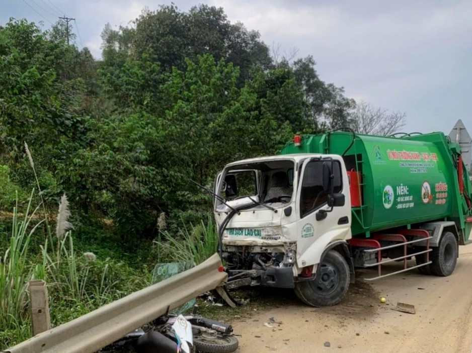 Đến 15 giờ 40 phút cùng ngày, khi nhóm xe đi đến gần Km 261+700 thì gặp xe ô tô chở rác thuộc quản lý của Công ty TNHH Dịch vụ nhà sạch Lào Cai, biển kiểm soát 24C-089.91 do Nghiêm Văn Bắc điều khiển, trên cabin xe có chở 2 người. Do xe của Ly Hờ Gó (sinh năm 2004, nghề nghiệp tự do) điều khiển chở theo Ly Xe Gơ (sinh năm 2009, học sinh lớp 9 trường PTDTBT THCS Y Tý) cùng trú tại huyện Bát Xát đi trước ở làn khẩn cấp nên không xảy ra va chạm với xe ô tô.