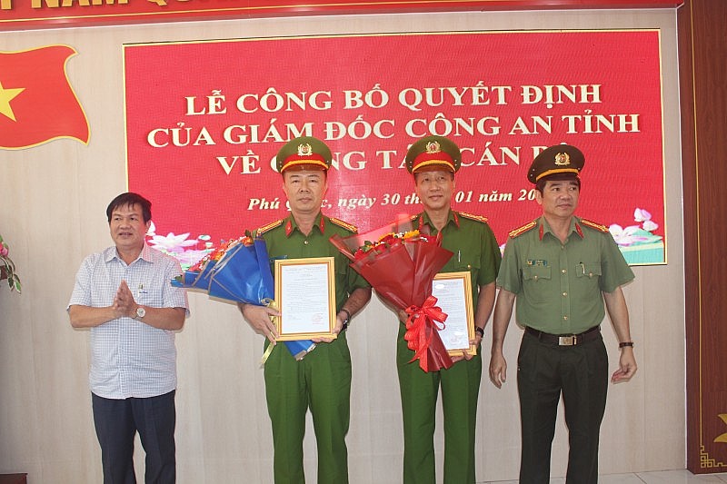 Theo đó, Đại tá Lê Văn Quý - Phó giám đốc Công an tỉnh Kiên Giang đã trao quyết định điều động Thượng tá Mai Phương Nam (Trưởng Công an huyện Hòn Đất) đến giữ chức vụ Trưởng Công an TP. Phú Quốc. Đồng thời trao quyết định điều động Đại tá Lê Văn Mót (Trưởng Công an TP. Phú Quốc), giữ chức vụ Trưởng phòng, phòng Cảnh sát Phòng cháy chữa cháy - Cứu nạn cứu hộ (thay cho Đại tá Nguyễn Thanh Nhanh, đã nghỉ hưu theo chế độ).