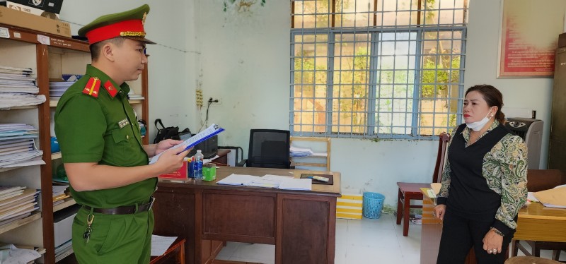 | Võ Thị Thanh Nga tại cơ quan công an - Ảnh: CACC |