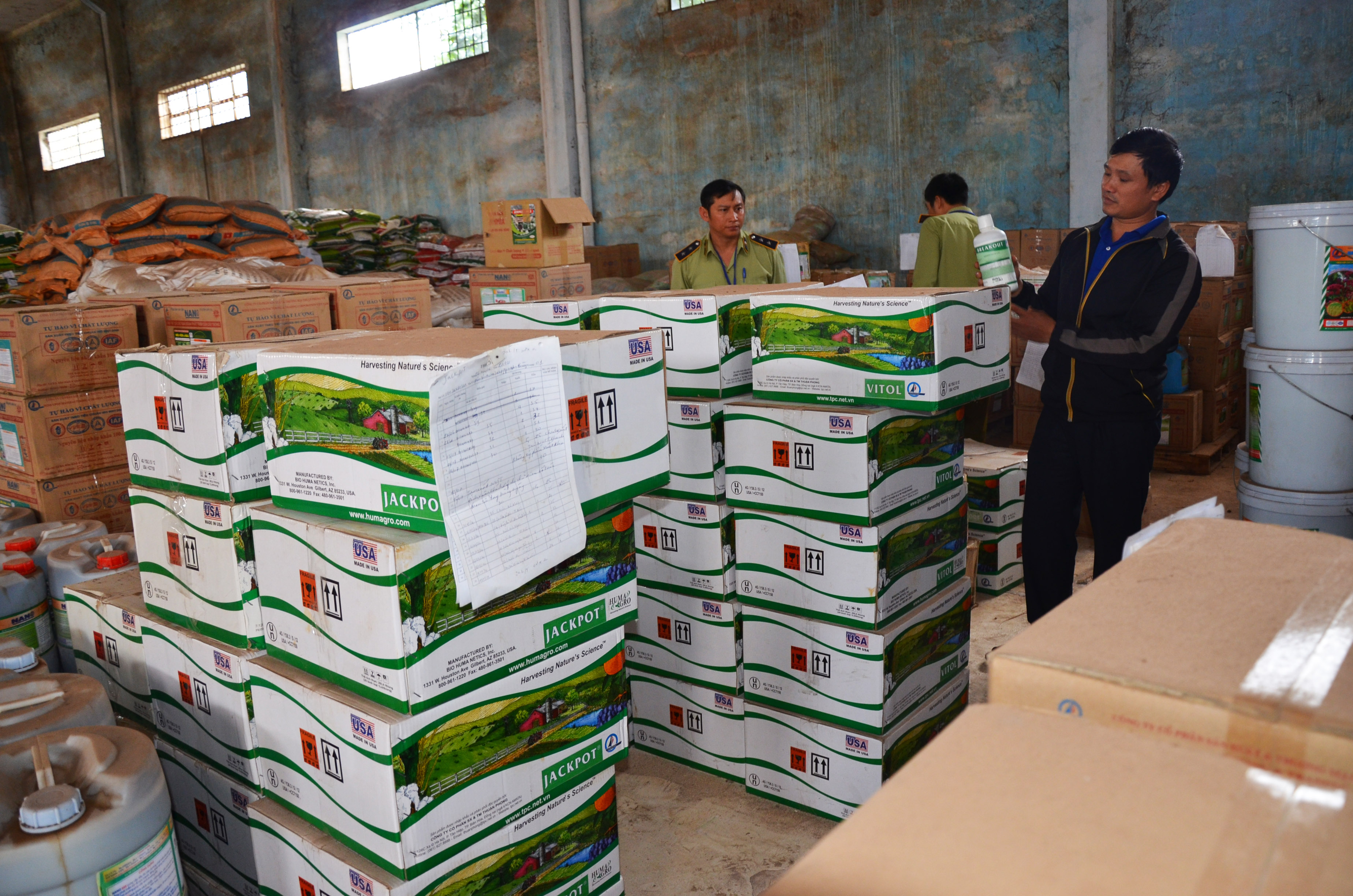 | Phân bón lá của Công ty Thuận Phong tại Văn phòng đại diện ở Đăk Lăk bị cơ quan chức năng kiểm tra và niêm phong. Ảnh : Hoàng Thiên Nga |