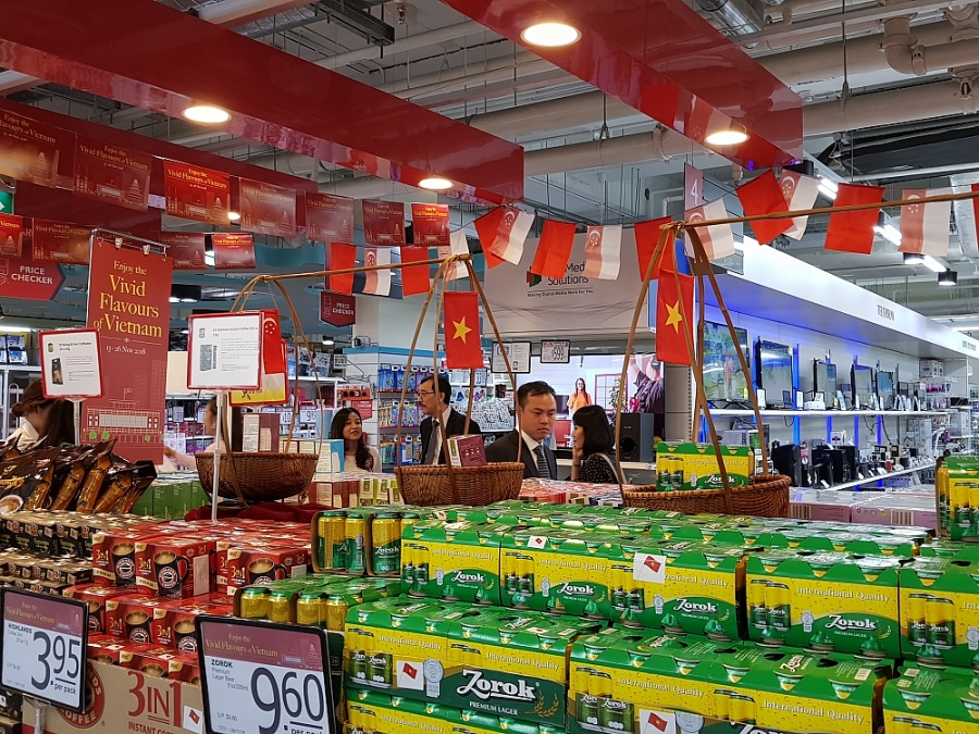 | Hàng Việt Nam được trưng bày tại một siêu thị ở Singapore |
