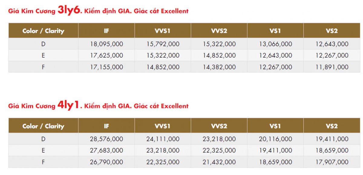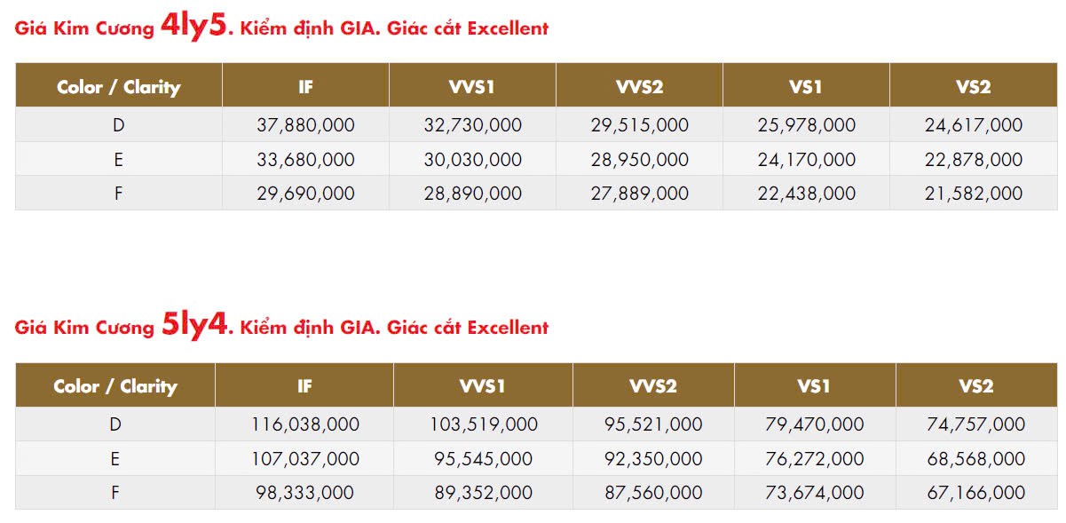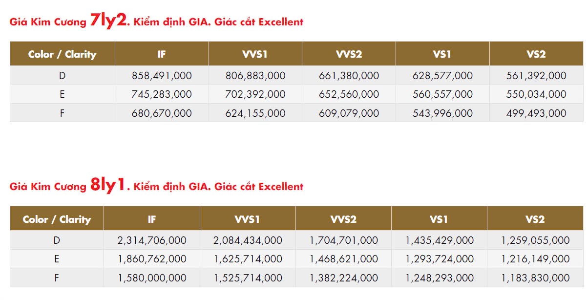 Cập nhật giá kim cương trong nước ngày 14/10/2024