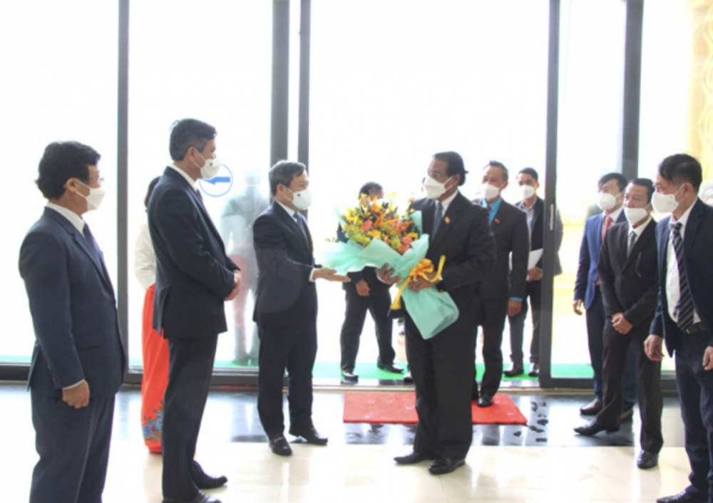 Ông Văn Xay Phong Sạ Vẳn- Ủy viên Ban Chấp hành Trung ương Đảng Nhân dân Cách mạng Lào- Bí thư- Tỉnh trưởng tỉnh Khăm Muộn bày tỏ sự cảm ơn về sự quan tâm, giúp đỡ chân tình của tỉnh Quảng Bình dành cho cán bộ, nhân dân tỉnh Khăm Muộn.