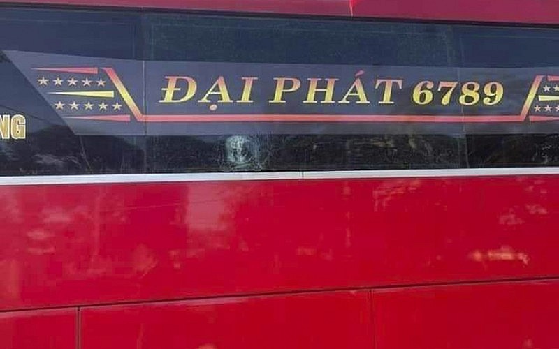 | Hình ảnh kính xe khách bị đập vỡ. (Ảnh: Nhà xe CC) |