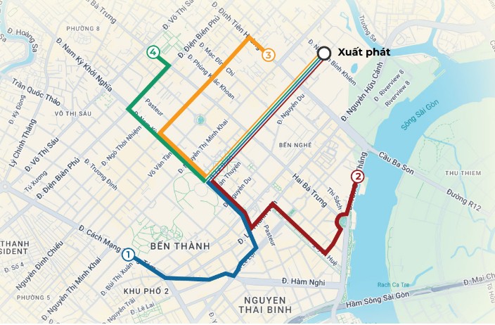 Theo kế hoạch, các đoàn bắt đầu sẽ xuất phát từ giao lộ Nguyễn Bỉnh Khiêm – Lê Duẩn, di chuyển ngang qua Lê Duẩn trước Hội trường Thống Nhất, sau đó chia thành 4 hướng chính: