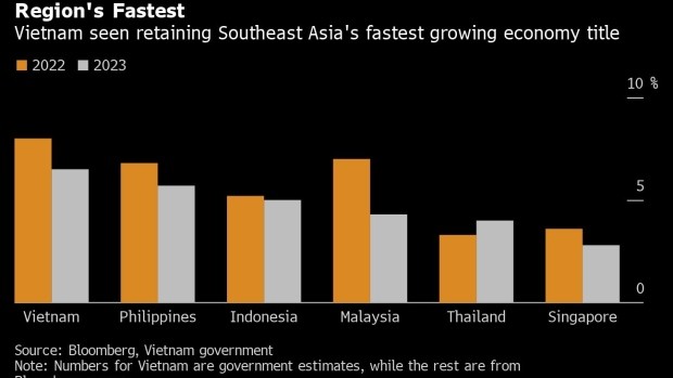 | Bảng tổng kết tăng trưởng kinh tế khu vực Đông Nam Á 2022-2023 (Ảnh: Bloomberg) |