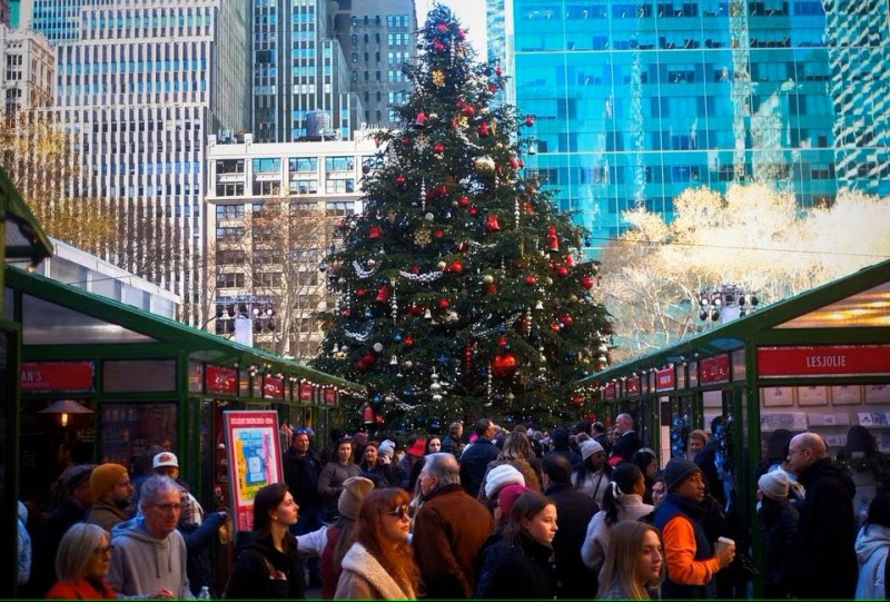 Những người mua sắm trong kỳ nghỉ lễ xếp hàng tại Làng Mùa đông Bryant Park, NYC, Mỹ (Ảnh: Reuters) |