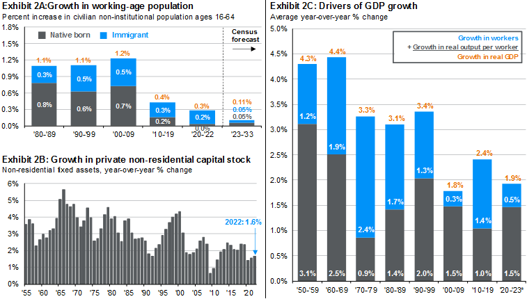 Tỷ lệ thất nghiệp nằm trong biên độ hẹp từ 3,4% đến 4% kể từ tháng 12 năm 2021 và có thể duy trì ở mức này trong năm 2024. Tất cả sự tăng trưởng về việc làm vào năm 2024 sẽ dẫn đến từ sự tăng trưởng của lực lượng lao động. Các dự báo Điều tra dân số vừa công bố tại Mỹ cho thấy, dân số trong độ tuổi 18-64 chỉ tăng 0,1% vào năm 2024, trong một xu hướng lâu dài phản ánh sự trưởng thành của thế hệ trẻ.