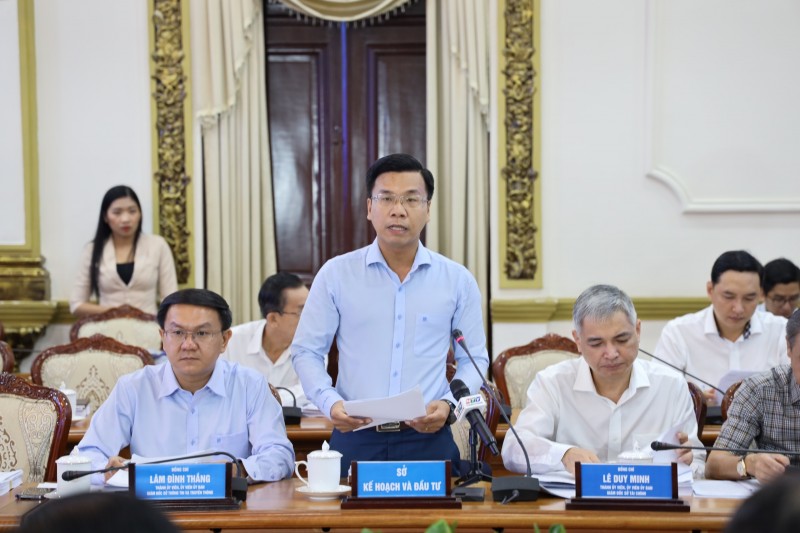 | Ông Phạm Trung Kiên - Phó Giám đốc Sở Kế hoạch và Đầu tư TP. Hồ Chí Minh báo cáo tại hội nghị |