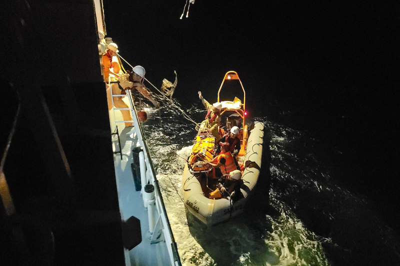 Đến 1h15 ngày 31/10, tàu SAR 412 đã tiếp cận được tàu QNg 98308 TS. Lúc này, bệnh nhân đã mất ý thức, liệt nửa người. Thuyền viên Nguyễn Văn Chì ngay lập tức được đội ngũ y bác sỹ cùng nhân viên cứu nạn thực hiện cấp cứu tại chỗ trên tàu QNg 98308 TS. Sau khi thực hiện cấp cứu ổn định tình trạng, bệnh nhân đã được chuyển lên tàu SAR 412 để được chăm sóc y tế chuyên khoa và đưa về đất liền điều trị.