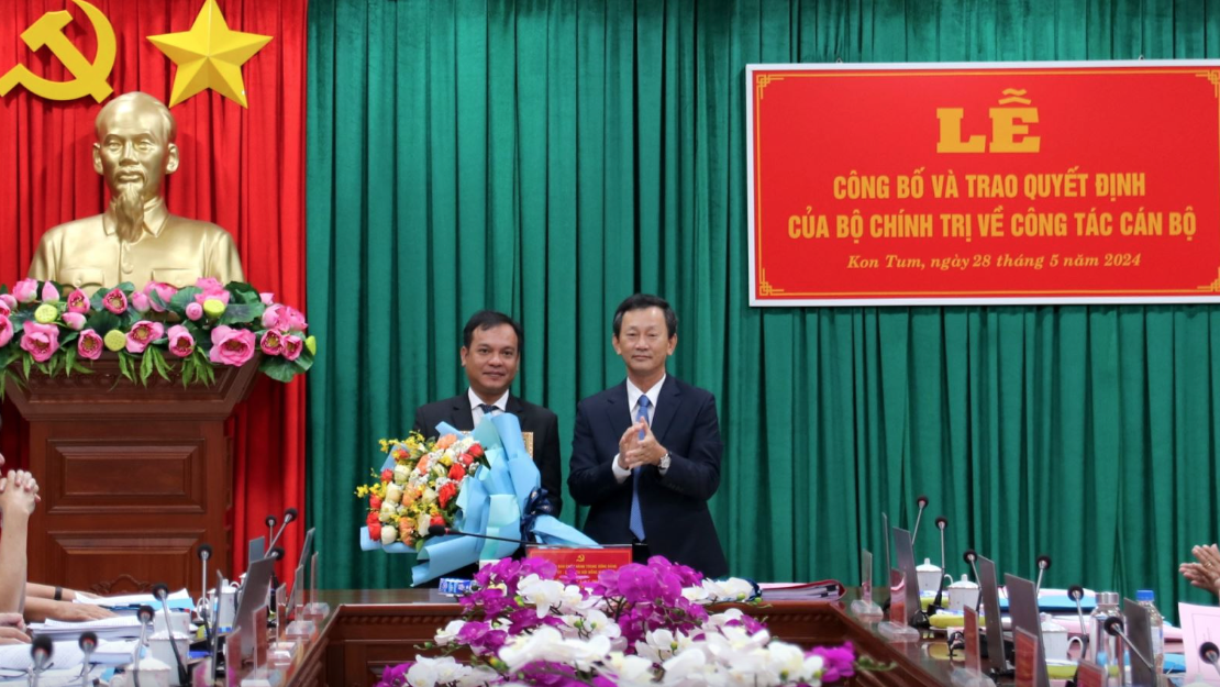 Sáng 28/5, Tỉnh ủy Kon Tum đã tổ chức Lễ công bố và Trao Quyết định của Bộ Chính trị "chuẩn y chức vụ Phó Bí thư Tỉnh ủy Kon Tum nhiệm kỳ 2020-2025".