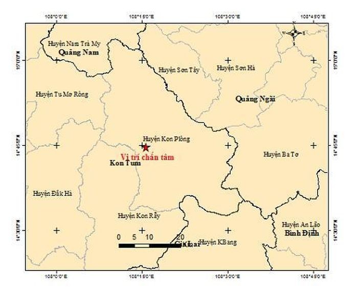 Theo Trung tâm báo tin động đất và cảnh báo sóng thần - Viện Vật lý Địa cầu cho biết, trận động đất đầu tiên trong sáng nay xảy ra lúc 01 giờ 9 phút tại khu vực huyện Kon Plông, tỉnh Kon Tum với độ lớn 3.0, tại vị trí có tọa độ (14.816 độ vĩ Bắc, 108.306 độ kinh Đông), độ sâu chấn tiêu khoảng 8.1km.