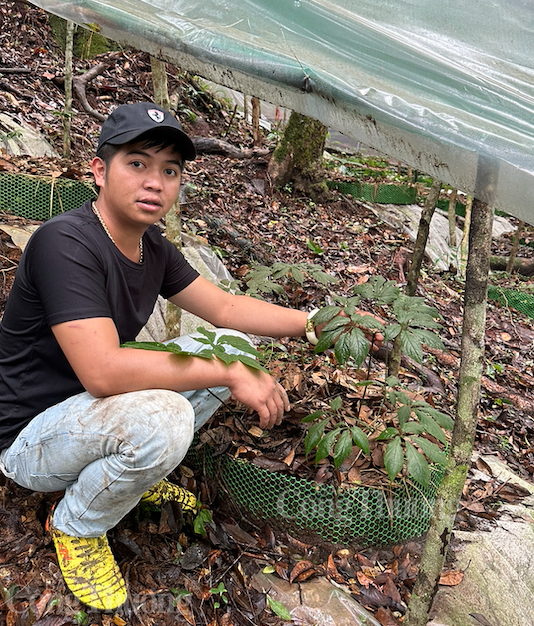 A Đôi cho biết: "Nhà tôi bắt đầu trồng sâm với nguồn vốn vay 100 triệu đồng từ Ngân hàng chính sách cho thanh niên lập nghiệp. Mới đầu chỉ vài chục gốc, sau phát triển ra 3-4 vườn sâm với khoảng 30.000 gốc".