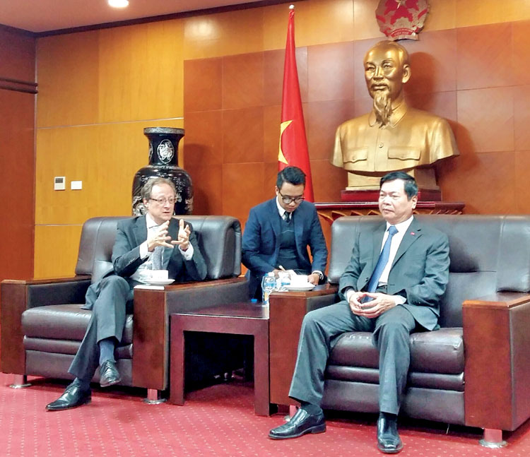 Bộ trưởng Bộ Công Thương Vũ Huy Hoàng trao đổi về mối quan hệ bền vững giữa Việt Nam và EU với Đại sứ Bruno Angelet |