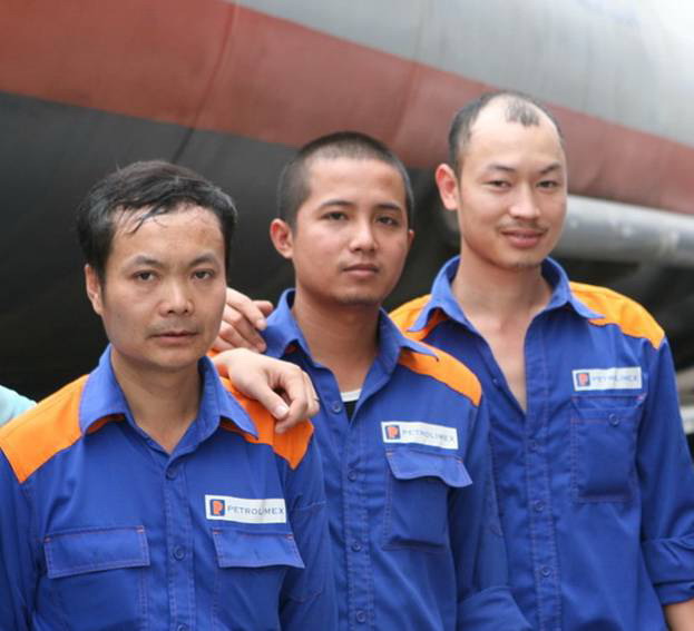 Lái xe PTS Hà Tây (từ trái qua phải) Bùi Quốc Hùng, Phạm Huy Toàn và Nguyễn Văn Lâm hoàn thành nhiệm vụ và sẵn sàng cho một hành trình mới.